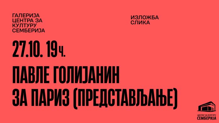 АКТУЕЛНОГалерија Izložba slika Pavla Golijanina 24. октобар 2025. Објави FacebookTwitterEmailпринтTelegramVKViberCopy URL Izložba slika Pavla Golijanina biće otvorena za publiku 27.10. 2025. u 19 sati u Galeriji Centra za kulturu „Semberija“ Bijeljina.