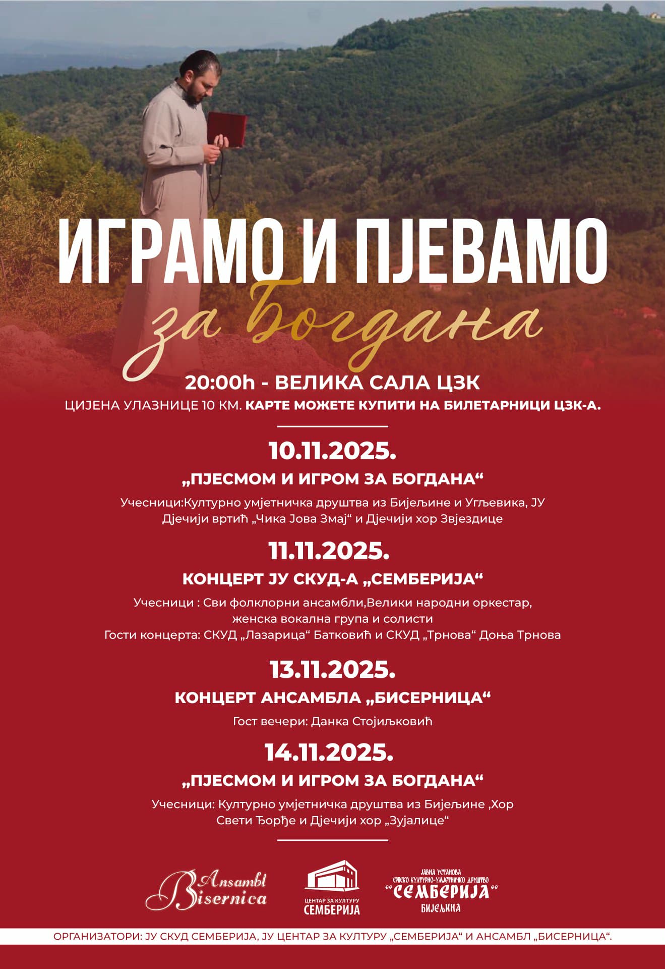 нашем суграђанину, свештенику Богдану Стјепановићу из Бијељине је потребна трансплатација јетре у иностранству, те су сe сва културно – умјетничка друштва са територије Семберије, Ансамбл „Бисерница“из Бијељине, музички едукативни центар „Музикум“ са дјечијим хором „Зујалице“ из Патковаче, Црквени хор „Свети Ђорђе“ из Бијељине, дјечији хор „Звјездице“ из Угљевика одазвали позиву за учешће на хуманитарним концертима „Пјесмом и игром за Богдана“ који ће се одржати у великој сали Центра за културу „Семберија“ и то 10.11.2025. године (понедељак), 11.11.2025. године (уторак), 13.11.2025. године (четвртак) и 14.11.2025. године (петак). Сви концерти почињу у 20 часова.