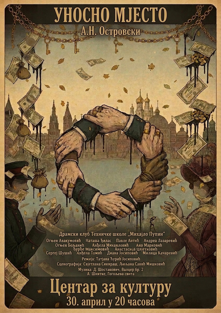 Iako napisan u 19. vijeku, ovaj ruski klasik u izvođenju srednjoškolaca postaje ogledalo njihove generacije. Drama postavlja pitanja kako sačuvati poštenje u svijetu gdje su korupcija, klijentelizam i „unosna mjesta“ jedini put do blagostanja, a za mlade ljude koji tek treba da zakorače u profesionalni svijet rad na ovom tekstu je bio više od glume – bila je to laboratorija etike i kritičkog razmišljanja.